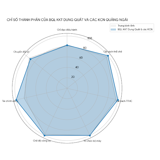 Năm 2025, Chỉ số cải cách hành chính của Ban Quản lý KKT Dung Quất và các KCN Quảng Ngãi đạt 89,85 điểm, cao hơn mức bình quân chung của các sở, ban, ngành trong tỉnh. Kết quả này thể hiện sự nỗ lực, quyết tâm của Ban Quản lý trong việc đổi mới phương thức quản lý, nâng cao hiệu lực, hiệu quả hoạt động hành chính, phục vụ ngày càng tốt hơn người dân và cộng đồng doanh nghiệp.