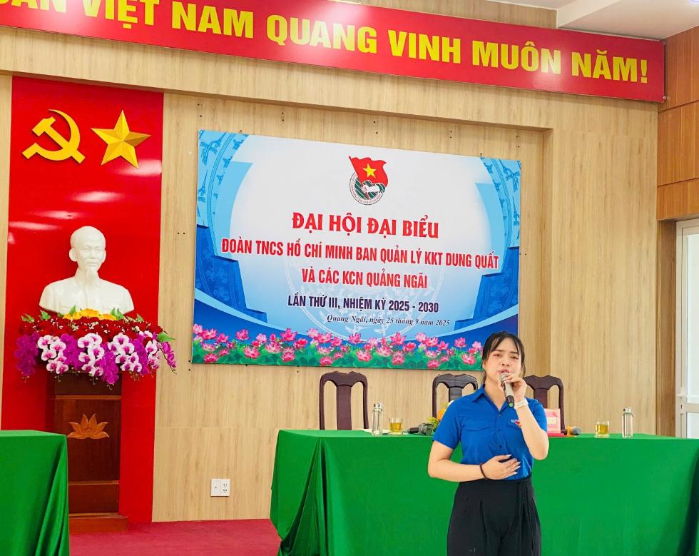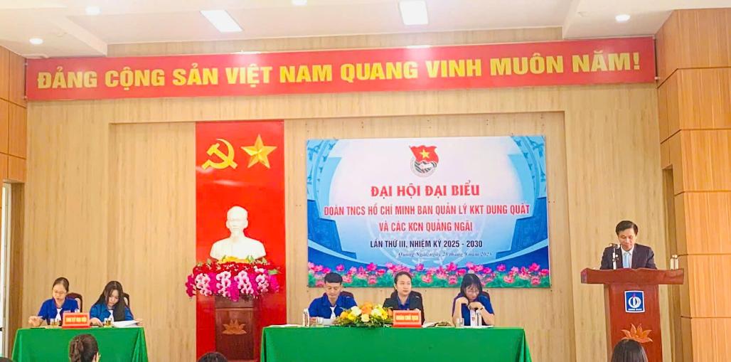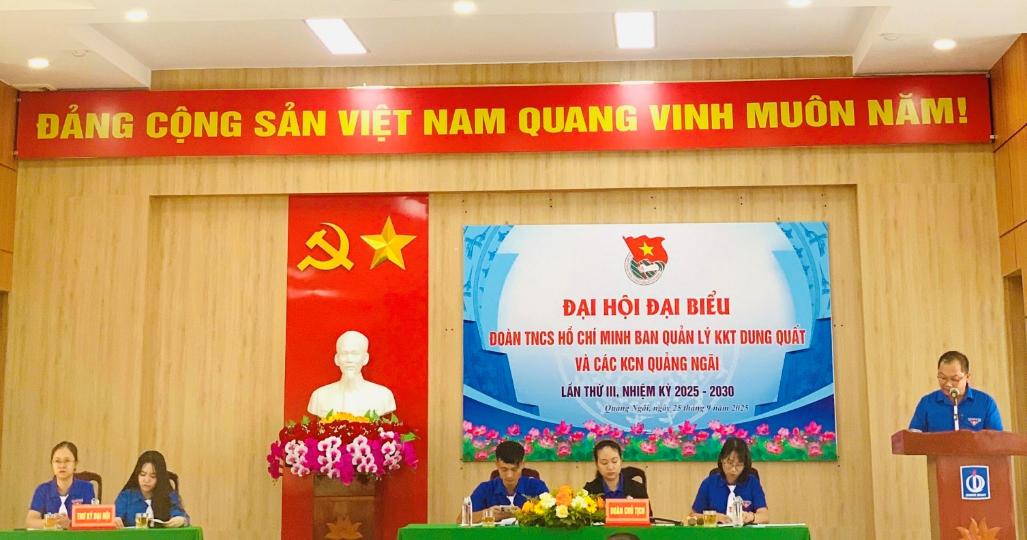 Căn cứ Kế hoạch số 103-KH/ĐTN ngày 07/8/2025 của Ban Chấp hành Đoàn Khối Cơ quan và Doanh nghiệp tỉnh Quảng Ngãi về việc tổ chức đại hội Đoàn các cấp, tiến tới Đại hội đại biểu Đoàn TNCS Hồ Chí Minh Khối Cơ quan và Doanh nghiệp tỉnh lần thứ II, nhiệm kỳ 2025 - 2030; được sự đồng ý, thống nhất của Ban Thường vụ Đảng ủy Ban Quản lý KKT Dung Quất và các KCN Quảng Ngãi và Ban Thường vụ Đoàn Khối Cơ quan và Doanh nghiệp tỉnh; Sáng ngày 25/9/2025, Ban Chấp hành Đoàn Thanh niên Ban Quản lý KKT Dung Quất và các KCN Quảng Ngãi đã tổ chức Đại hội Đại biểu Đoàn TNCS Hồ Chí Minh Ban Quản lý KKT Dung Quất và các KCN Quảng Ngãi lần thứ III, nhiệm kỳ 2025 - 2030 nhằm đánh giá khách quan, toàn diện những kết quả đạt được cũng như những hạn chế, khuyết điểm của nhiệm kỳ vừa qua.