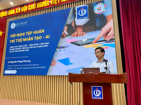 Sáng ngày 15/4, Ban Quản lý KKT Dung Quất và các KCN Quảng Ngãi phối hợp với Công ty CP Đầu tư BIT Group tổ chức Hội nghị tập huấn về trí tuệ nhân tạo (AI) cho đội ngũ công chức, viên chức Ban Quản lý và lãnh đạo, quản lý các doanh nghiệp đang hoạt động trên địa bàn KKT Dung Quất và các KCN tỉnh.